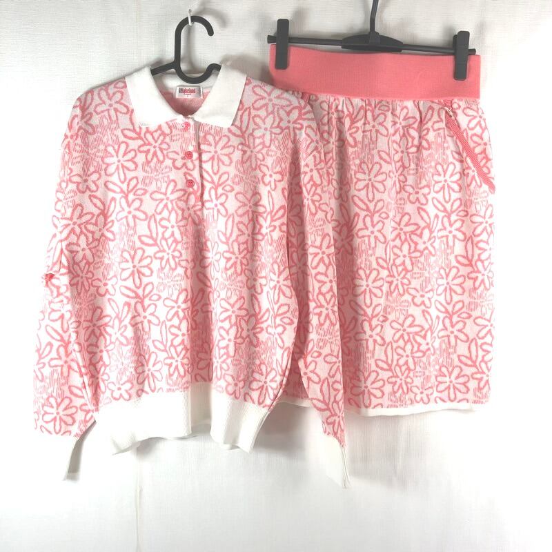 レイクランド Lakeland セットアップ ニット 花柄 ピンク 白 Lサイズ 884678