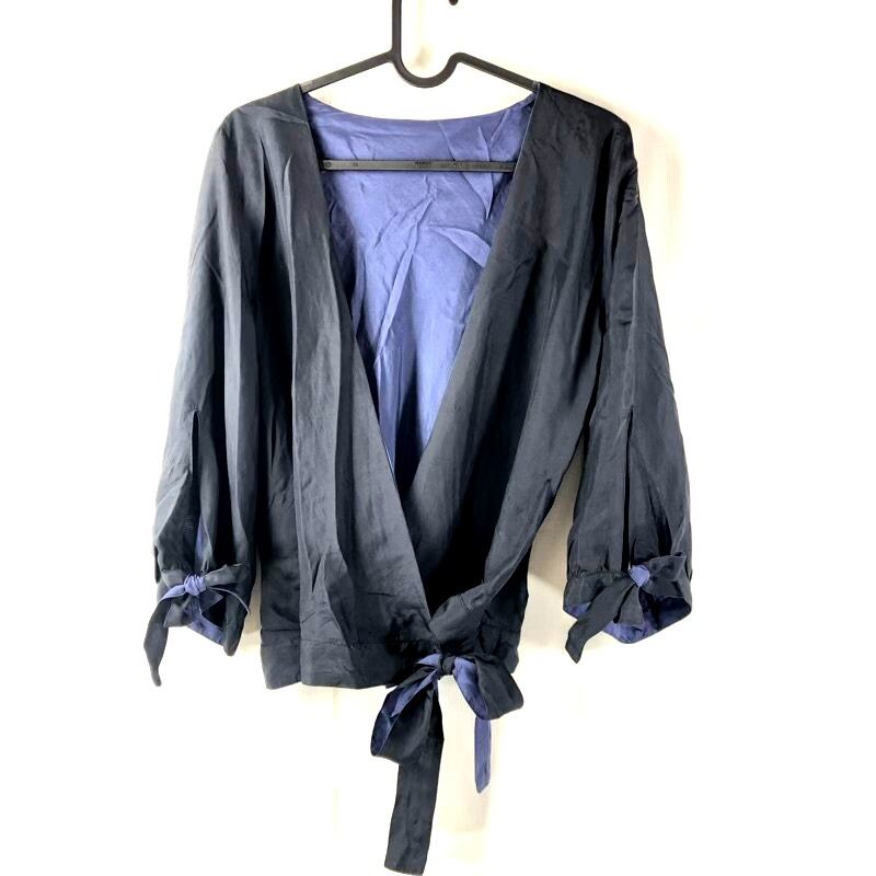 ロコジュリィ Rocojuli カーディガン シルク100% 日本製 リバーシブル リボン ネイビー 黒 885724