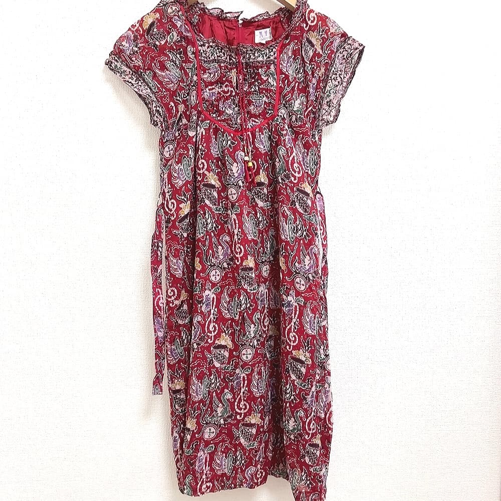 マリムラ 馬里邑 ワンピース 半袖 総柄 赤系 9号 885785