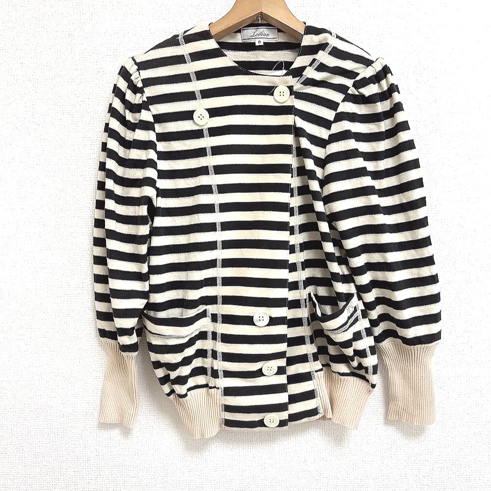 レリアン Leilian カーディガン 長袖 ボーダー 黒 x 白 9サイズ 885788