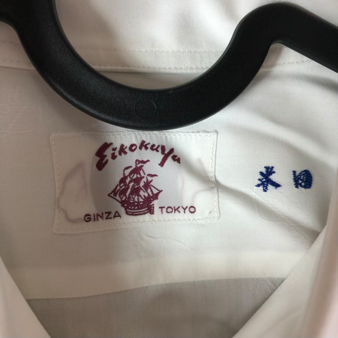 銀座英國屋 ワイシャツ 英字柄 綿100% 白 Mサイズ 885818