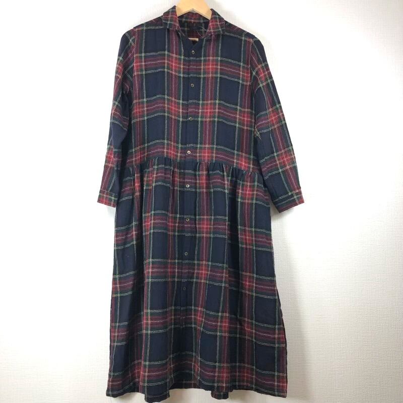 イチ ichi シャツワンピース ウール チェック 赤紺 サイズ表記なし 887594