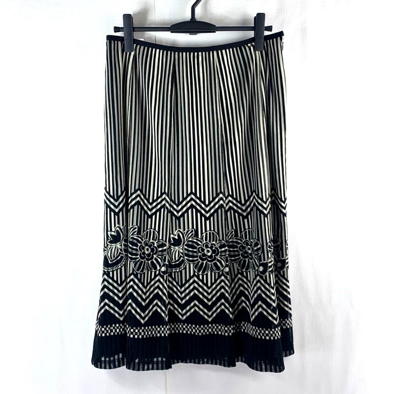 ミゼール MISSEL スカート ストライプ 花柄 黒 白 LLサイズ 888416