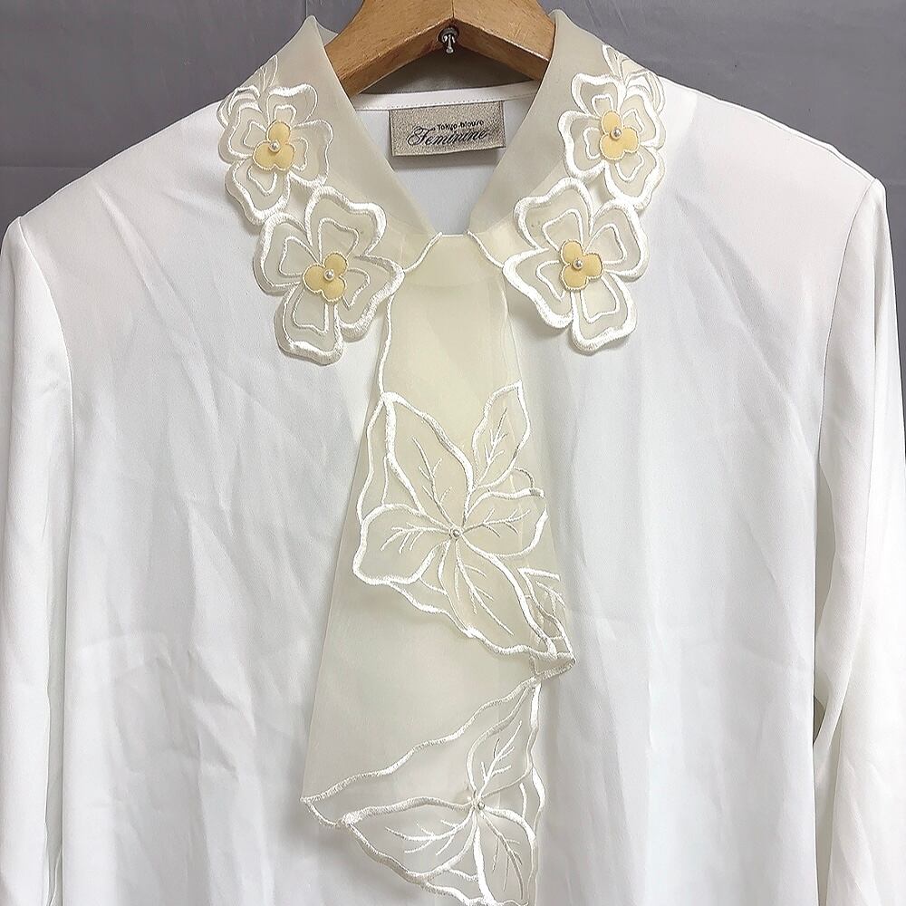 東京ブラウス タイブラウス 長袖 花柄 ホワイト 885809