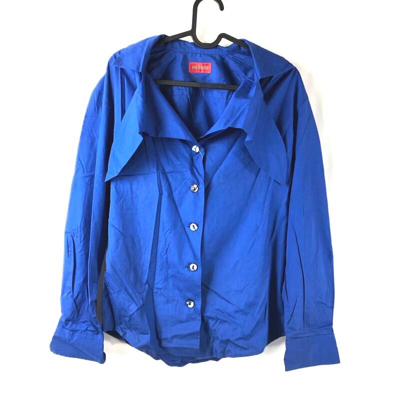 ケンゾー KENZO ブラウス 綿100% デザイン襟 青 Mサイズ 889997
