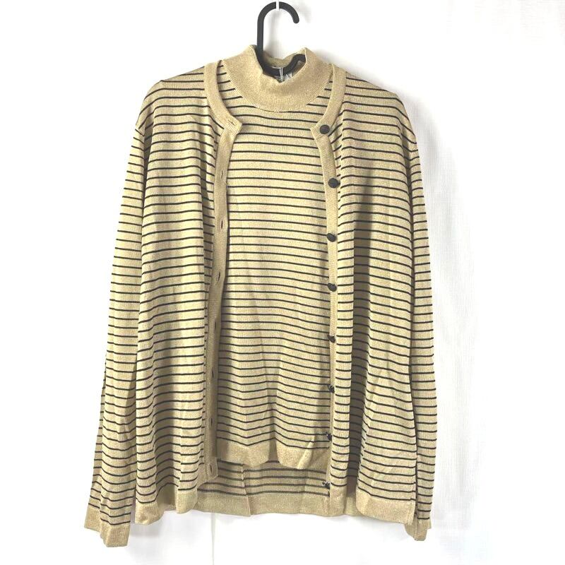 イエガー JAEGER ニット アンサンブル ハイネック ラメ ボーダー タグ付き ゴールド系 889999