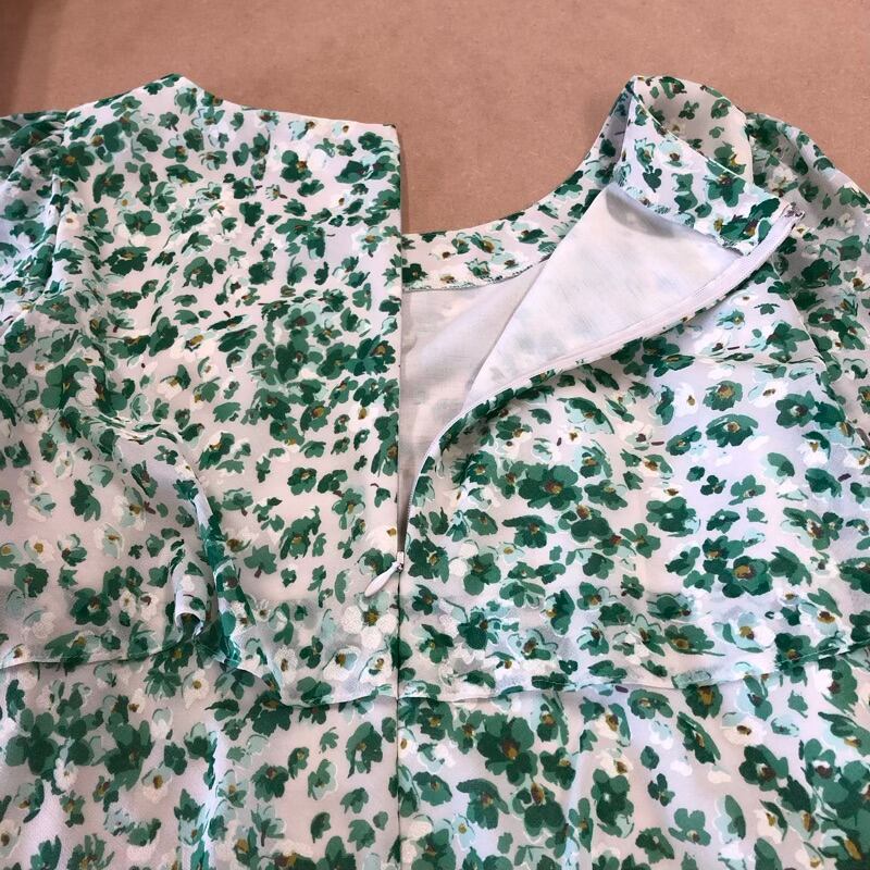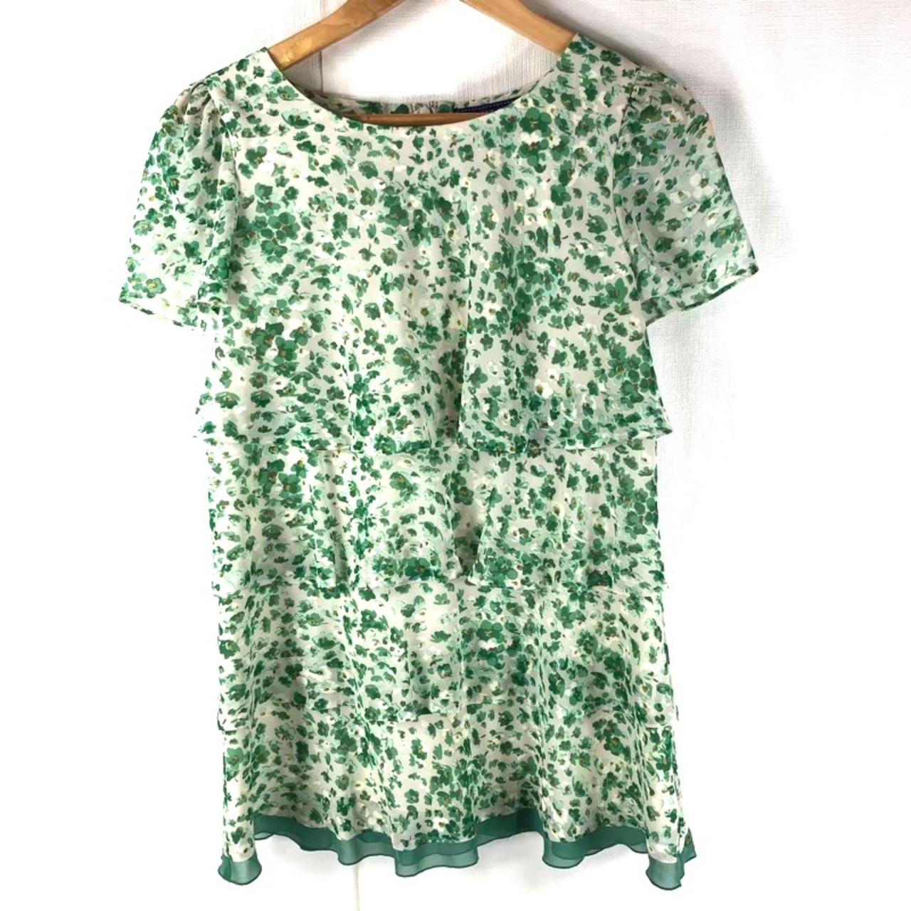エムズグレイシー M'S GRACY カットソー 半袖 フリル 花柄 裏地付き バックファスナー 日本製 緑 40サイズ 891997