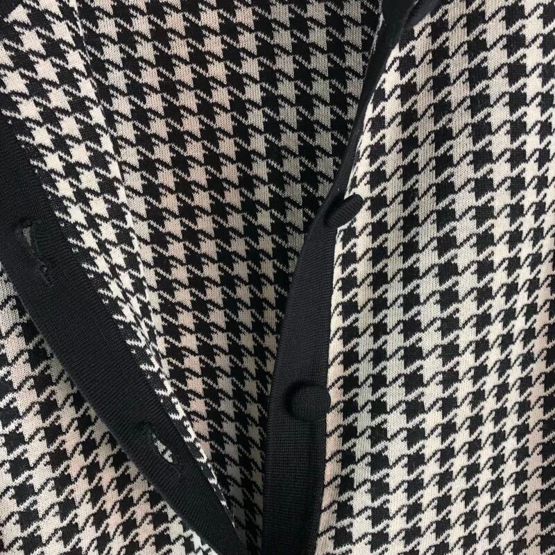 トマツ tomatsu ジャケット ニット 千鳥柄 リボン チャーム付き 肩パッド 黒系 893143