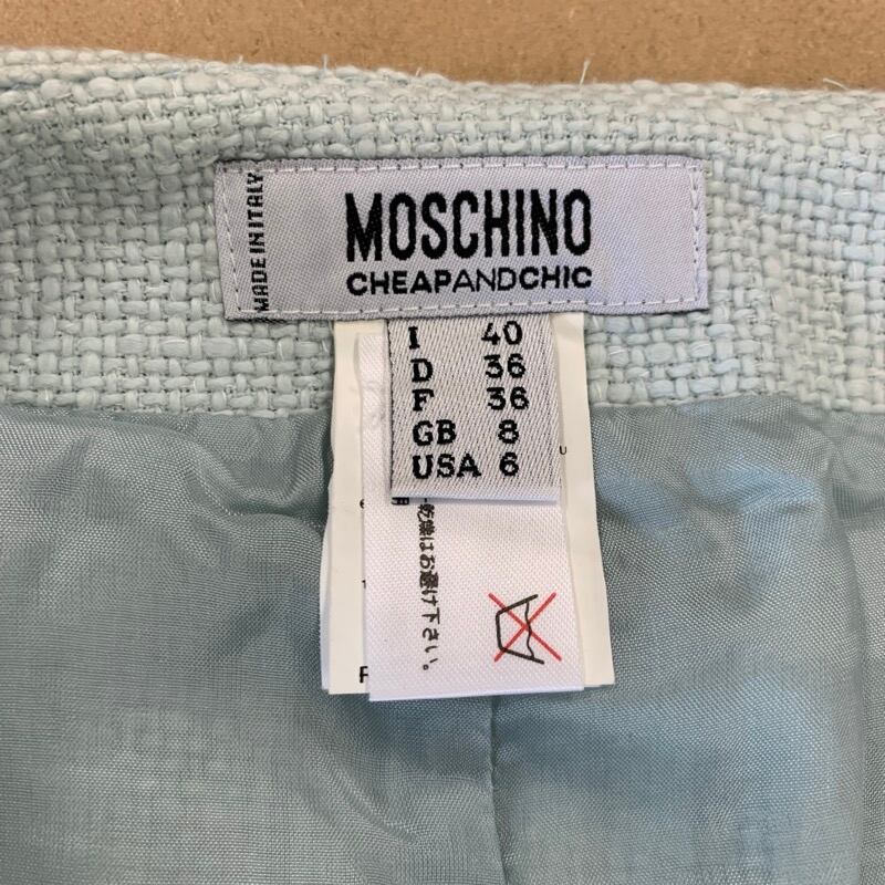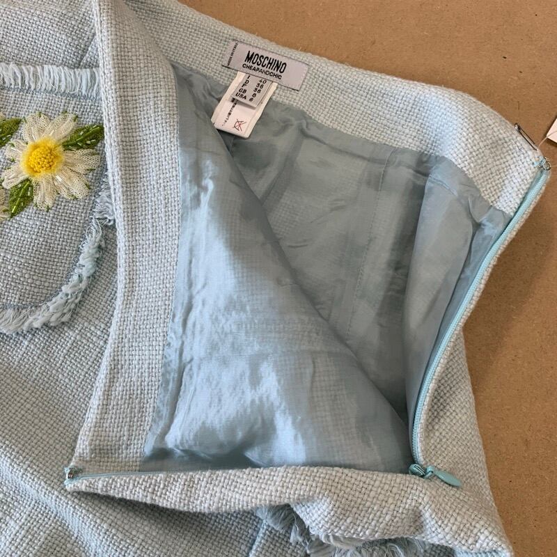モスキーノ MOSCHINO スカート 花ビーズ刺繡 水色 36サイズ 893455
