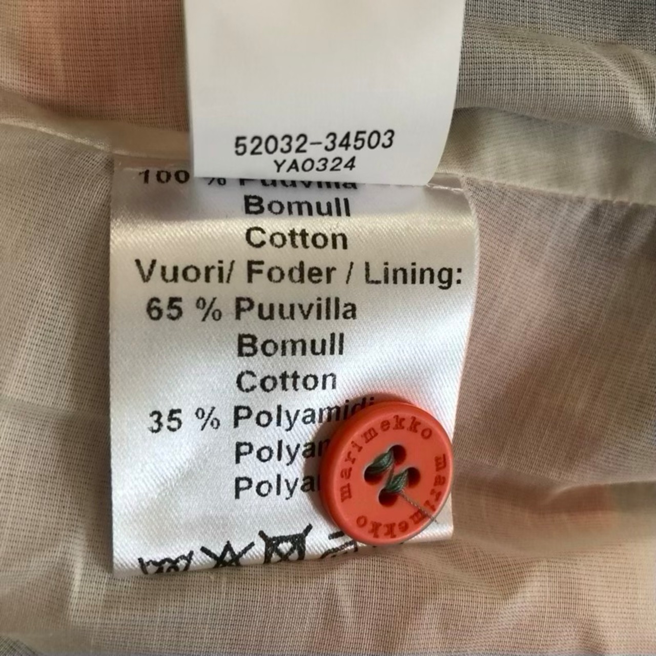 マリメッコ marimekko ワンピース 半袖 柄模様 コットン100% ロゴボタン リボン紐 裏地付き 黒 くすみグリーン オレンジ グレー系 36サイズ 893901 | Ethical Store