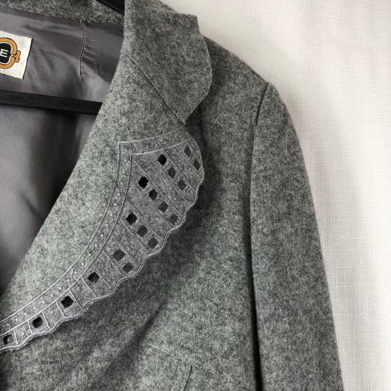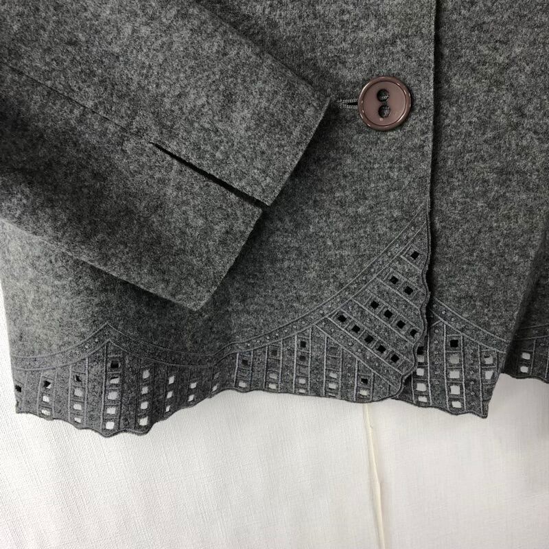 レジァンス REGENCE ジャケット レース ボタン 袖スリット 肩パッド グレー 44サイズ 894289
