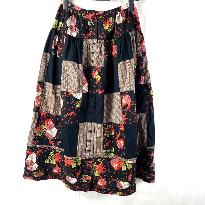ピンクハウス PINK HOUSE スカート フレア パッチワーク柄 綿100% 赤 黒 894688