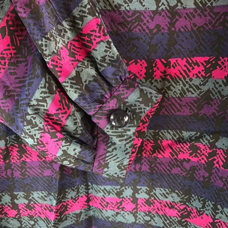 ミラショーン mila schon due ブラウス 長袖 シルク100% ボーダー 肩パッド 紫 ピンク ネイビー系 44サイズ 894824