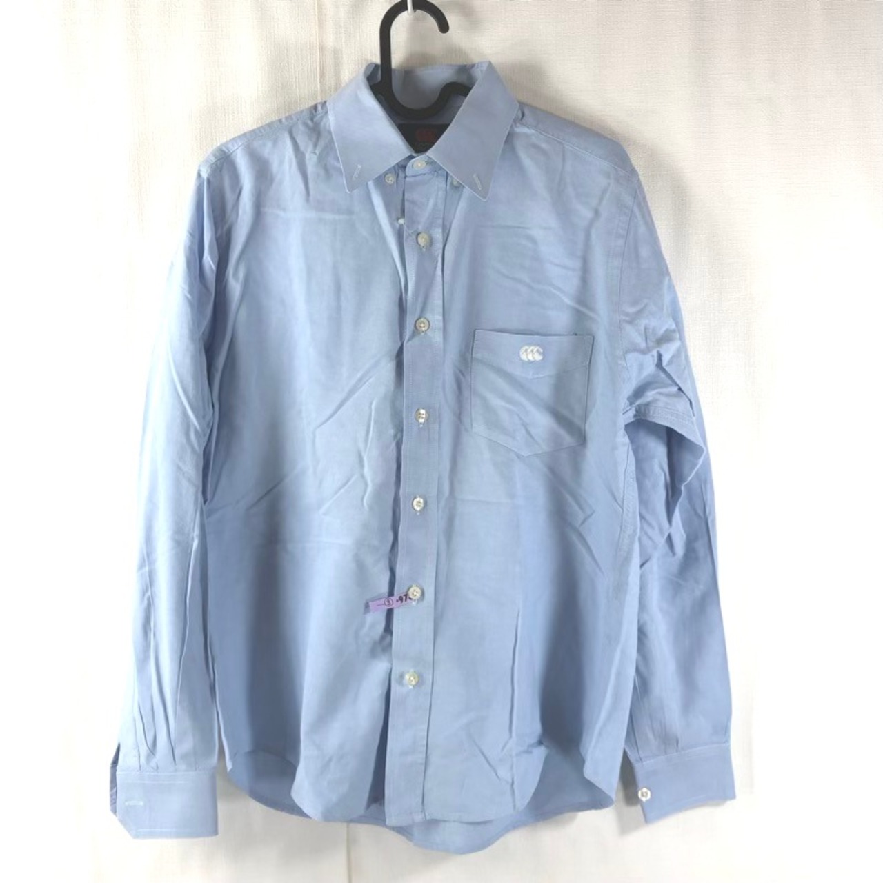 カンタベリーオブニュージーランド CANTERBURY OF NEW ZEALAND シャツ 長袖 綿100% ロゴ刺繍 水色 Mサイズ 894835