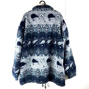 ミカ MIKA フリースジャケット 長袖 ノルディック柄 ニュージーランド製 ネイビー系 Lサイズ 896903