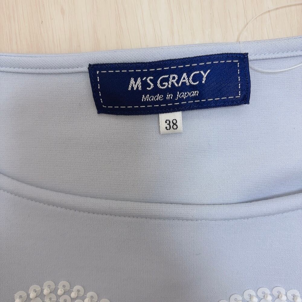 エムズグレイシー M'SGRACY カットソー リボン 水色 38サイズ 896994