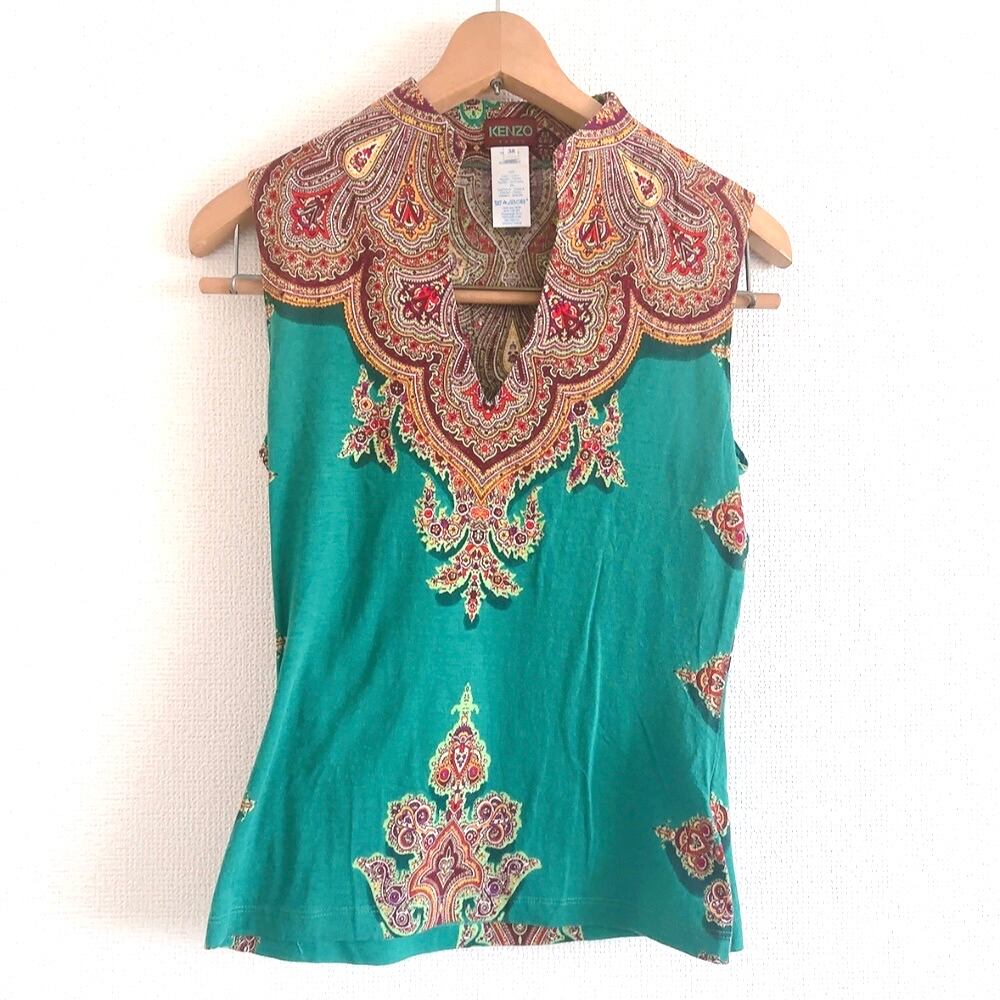 ケンゾー KENZO カットソー ノースリーブ グリーン系 38サイズ 897911