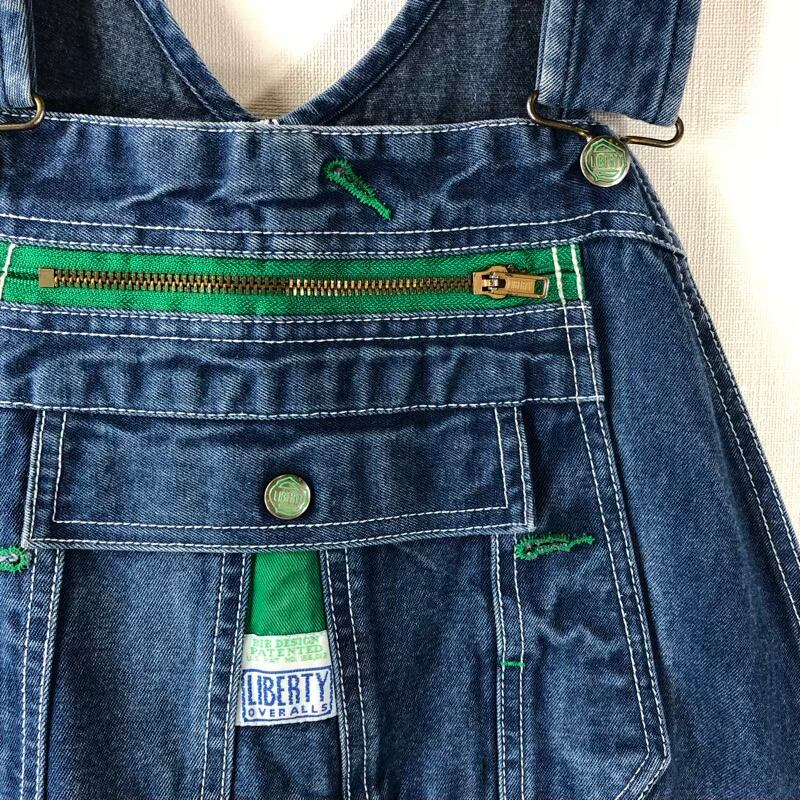 リバティ LIBERTY オーバーオール デニム ロゴ入り ポケットデザイン ファスナー 緑 ブルー系 898203