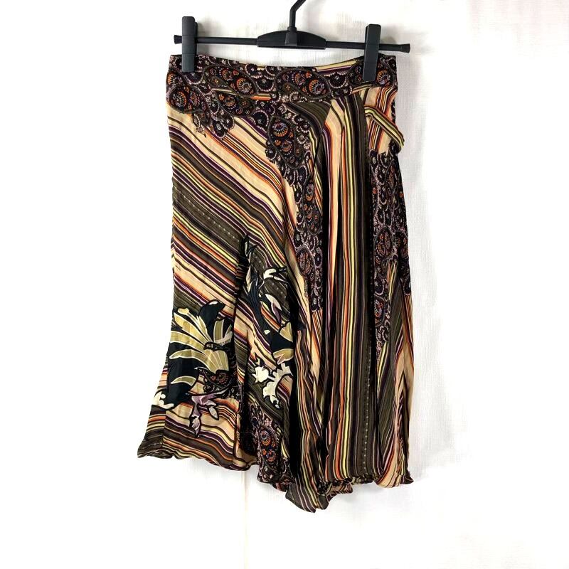 ケンゾー KENZO スカート フレア 花柄 絹 ブラウン系 36サイズ 898207