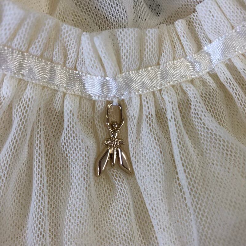 パトリツィアぺぺ PATRIZIA PEPE カットソー 半袖 メッシュ素材 チュール ハート刺繍 チャーム付き タグ付き クリーム色 白系 42サイズ 898217