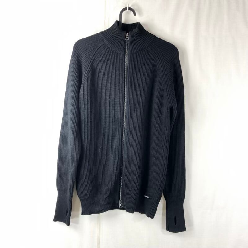 ディーゼル DIESEL ジャケット ジップ ニット 長袖 ハイネック ロゴ入り 指穴あり 黒 899948