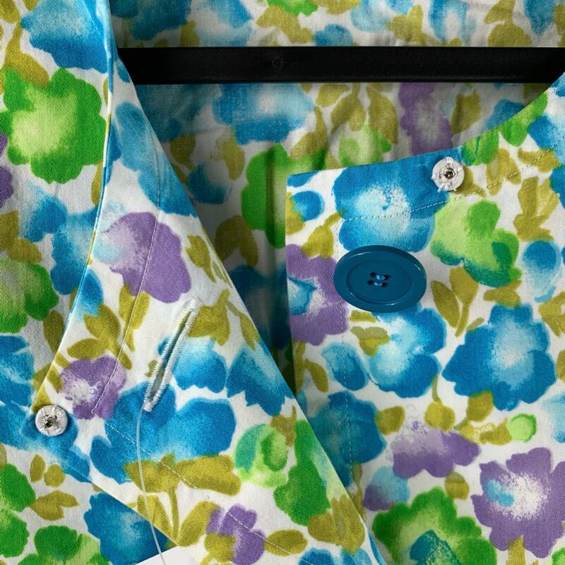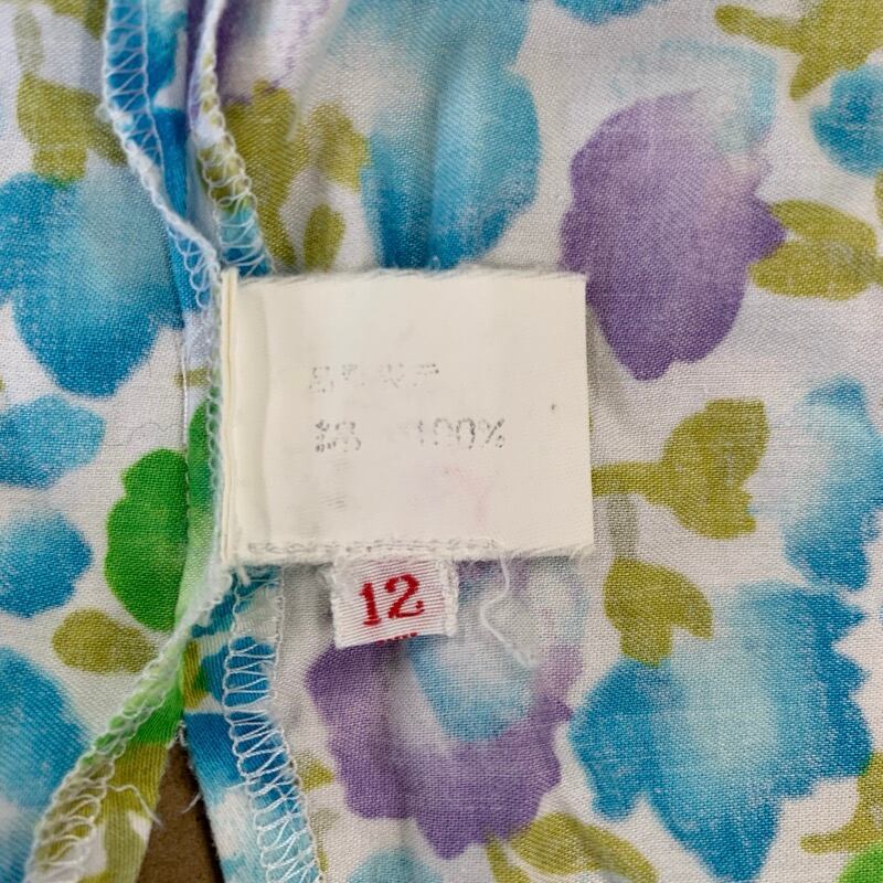 ジバンシー ヌーベル ブティック GIVENCHY NOUVELLE BOUTIQUE トップス 半袖 綿100% 肩パッド 日本製 花柄 水色 黄緑 12サイズ 900591 | Ethical Store