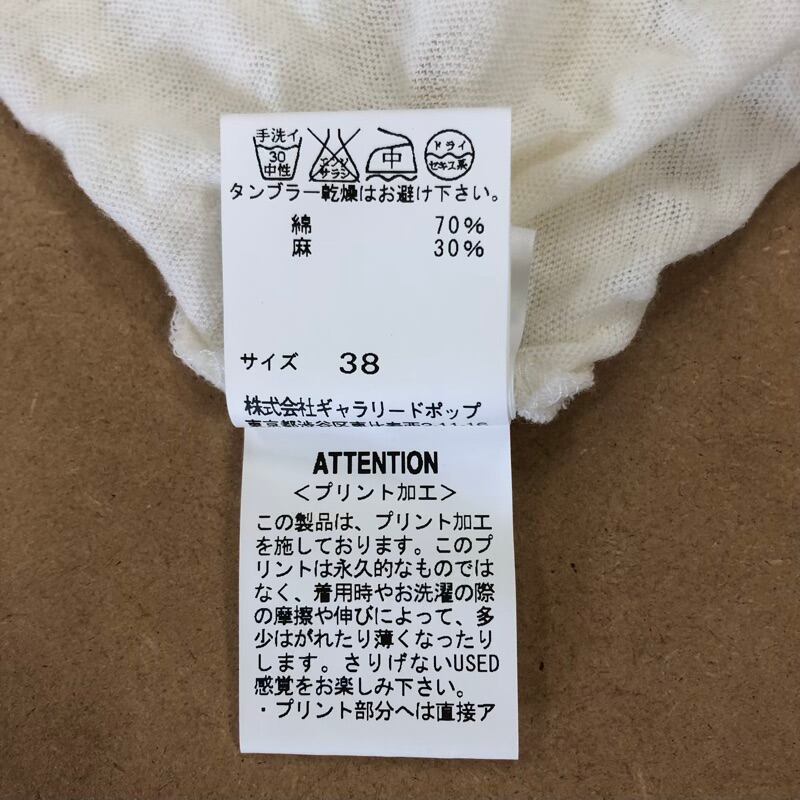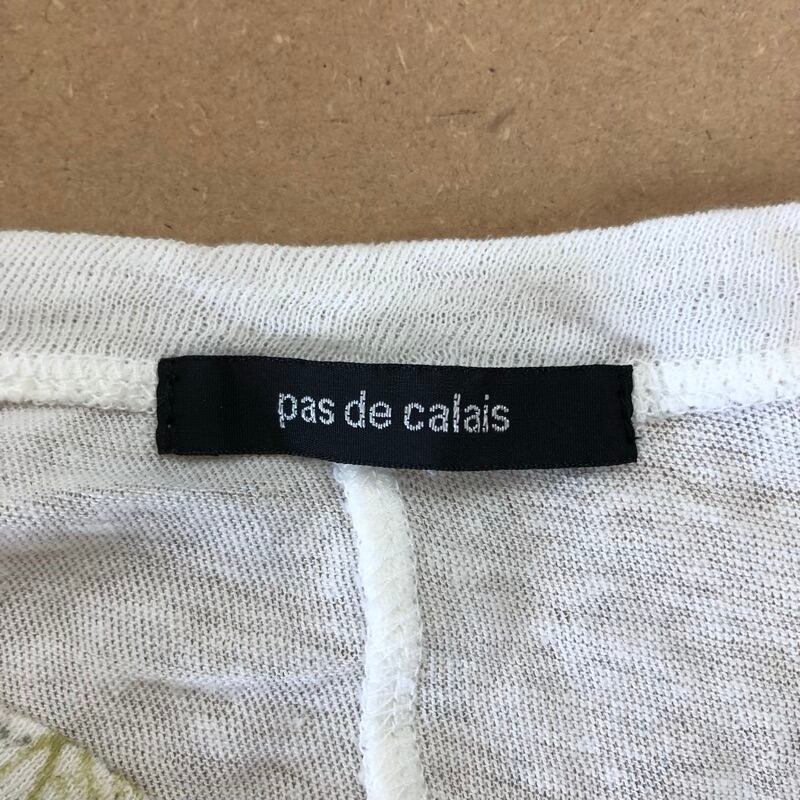 パドカレ pas de calais カットソー 綿 麻 グリーン柄 オフホワイト 38サイズ 901339