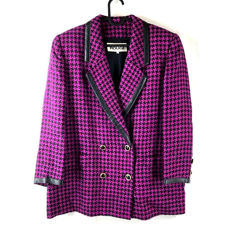 ラピーヌルージュ LAPINE ROUGE ジャケット 長袖 千鳥柄 肩パッド 紫系 13サイズ 901630