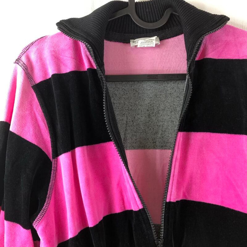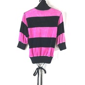 ソニアリキエル SONIA RYKIEL ジャケット 七分袖 ボーダー リボン紐 ロゴ入り ダブルジップ 黒 ピンク Lサイズ 901643