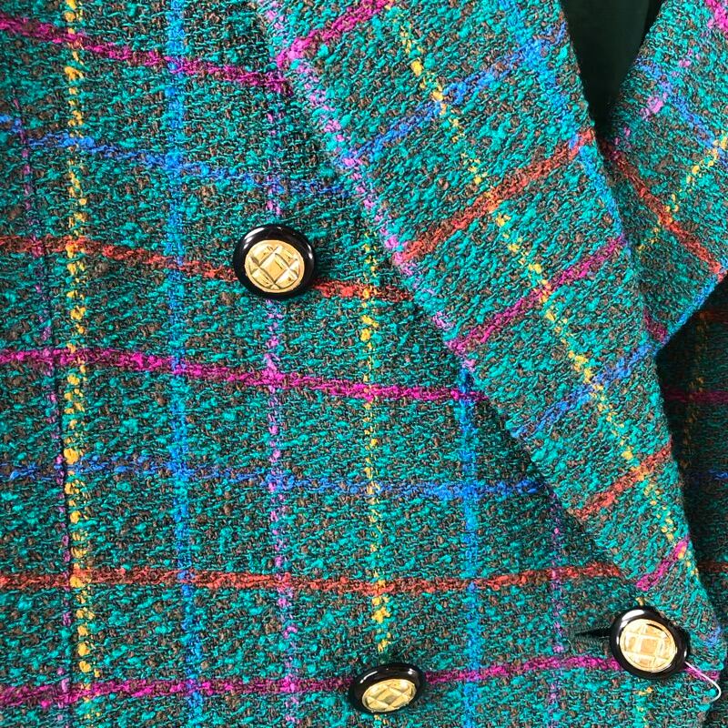 ラピーヌルージュ LAPINE ROUGE セットアップ スカートスーツ 長袖 チェック柄 肩パッド 緑 13サイズ 901644