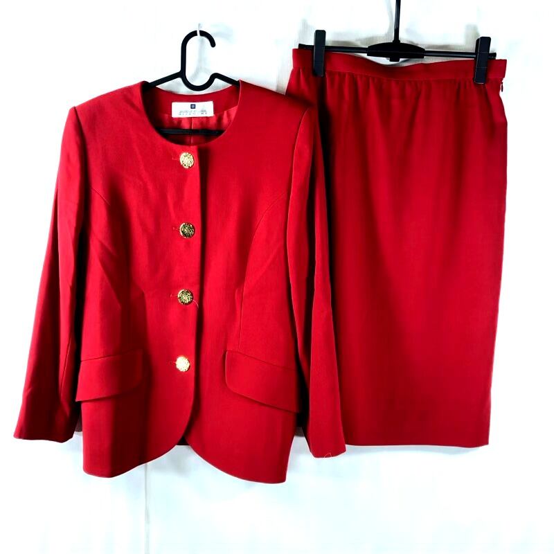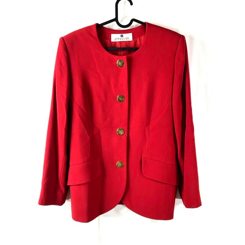 ジバンシー Givenchy セットアップ スカートスーツ 長袖 ゴールドボタン 肩パッド 赤 10½サイズ 901653