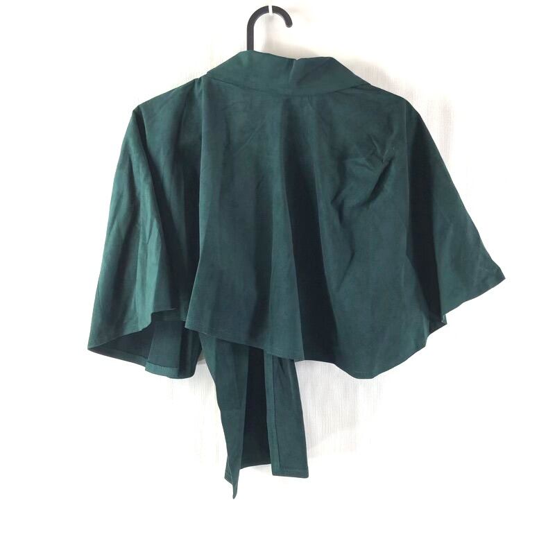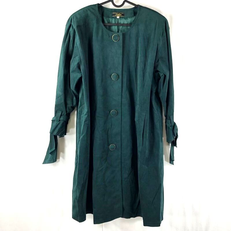 レリアン Leilian コート ポンチョ付き 袖リボン 深緑 9サイズ 901663