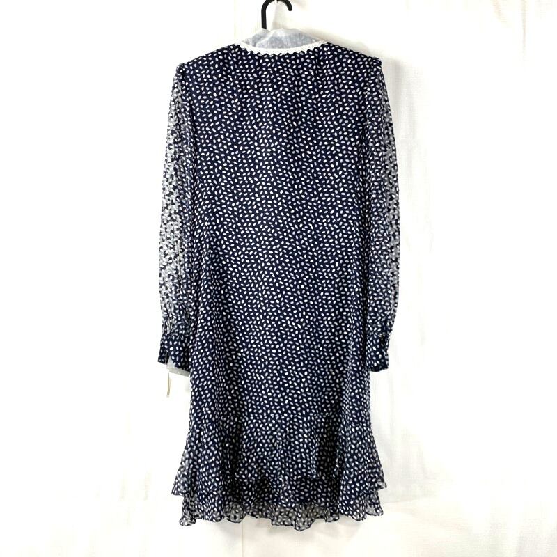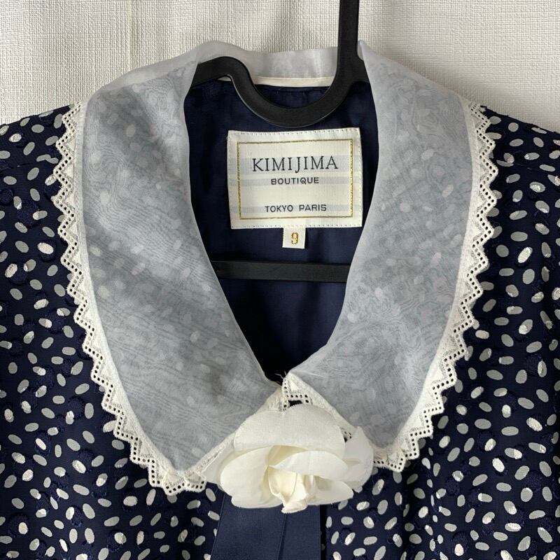キミジマブティック KIMIJIMA BOUTIQUE ワンピース 水玉 襟レース シースルー コサージュ 肩パッド 日本製 タグ付き ネイビー 9サイズ 901705