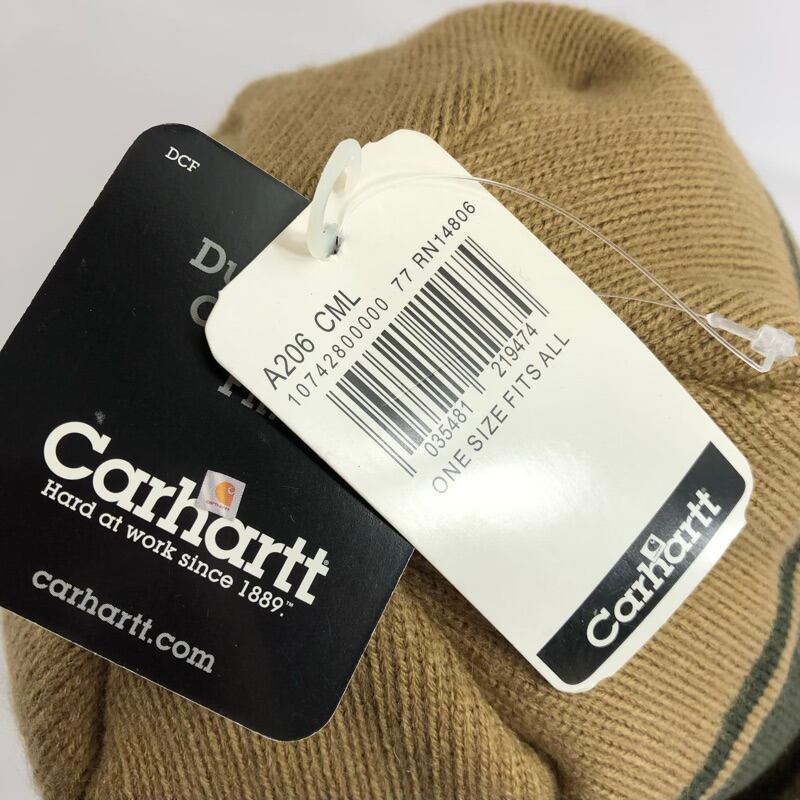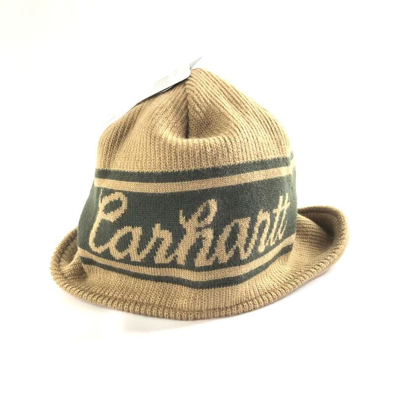 カーハート Carhartt 帽子 ニット 英字ロゴ 内側ボア タグ付き 深緑 ベージュ ワンサイズ 902381