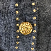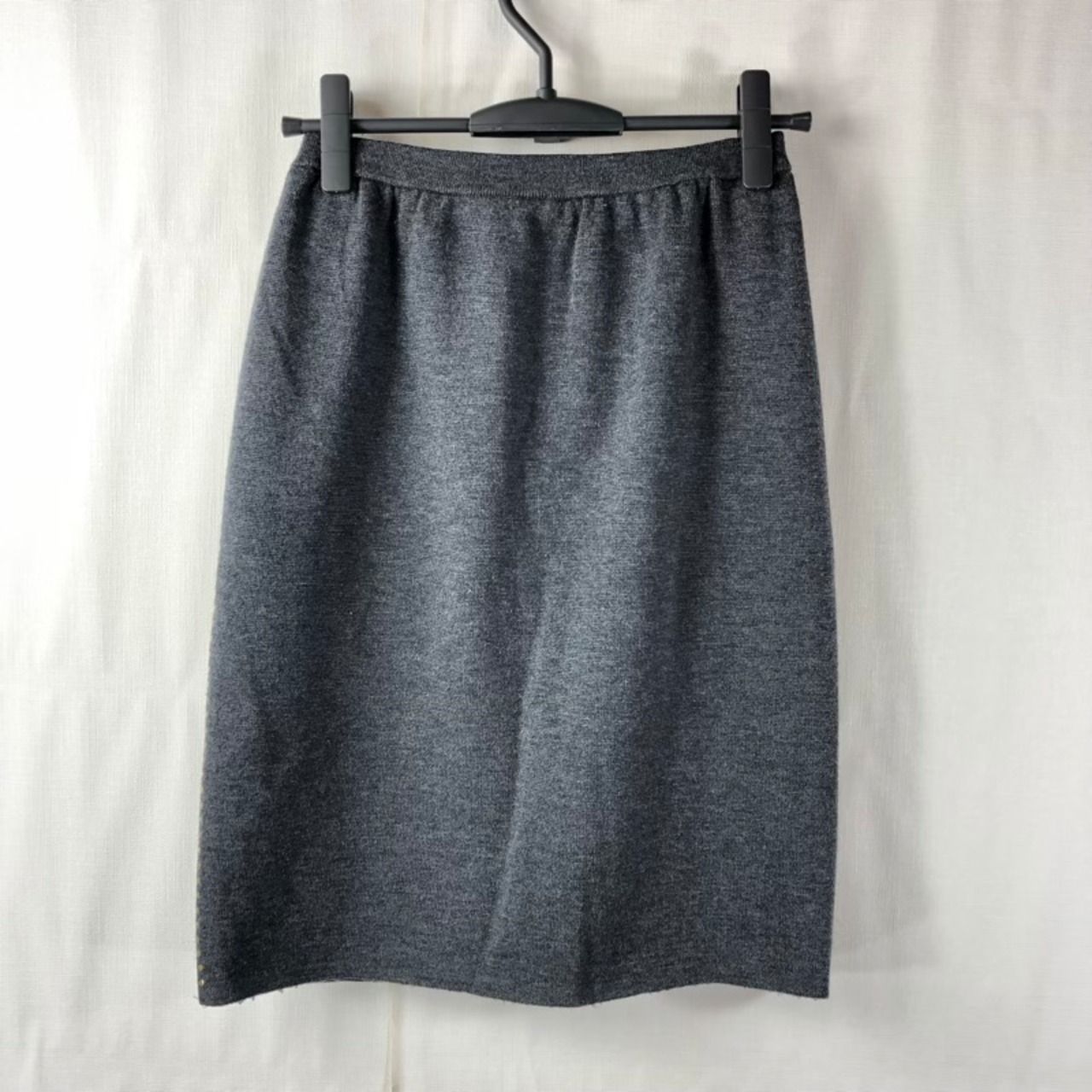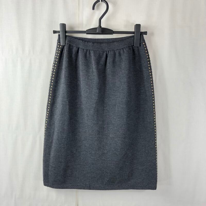 マダムジョコンダ madam Joconde セットアップ ニット スタッズ ゴールドボタン 肩パッド チャコールグレー Mサイズ 907431