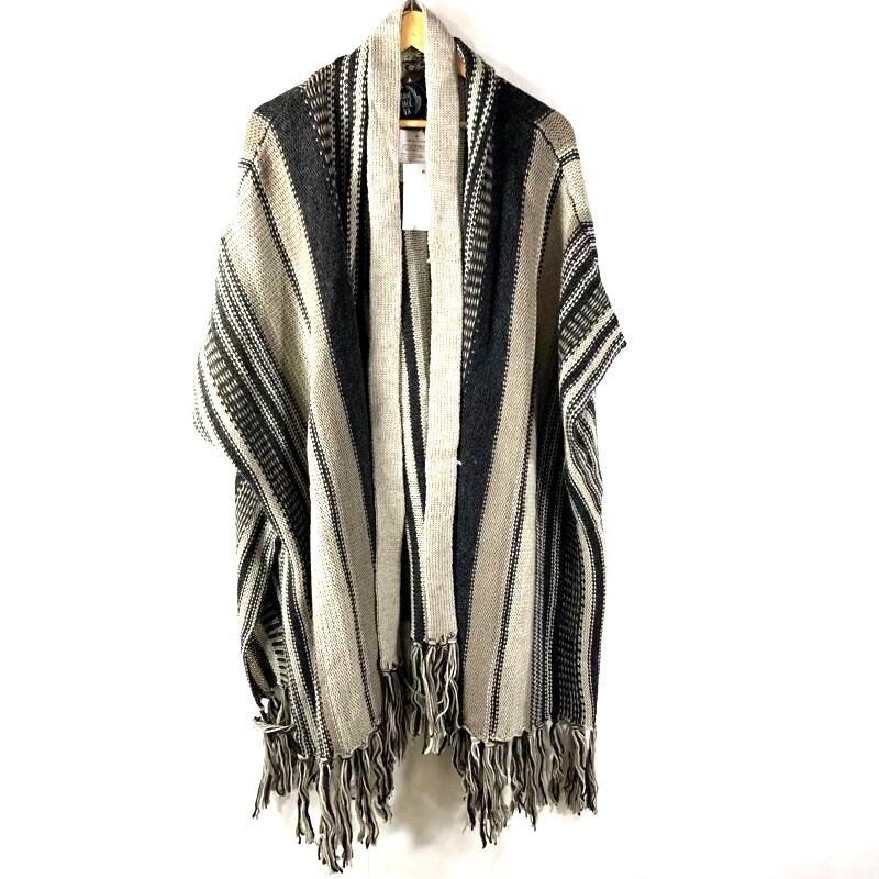 ナチュラルヴィンテージゴア NATURAL VINTAGE GOA ベスト ケープ 紐付き ストライプ 白 ブラウン Fサイズ 907435