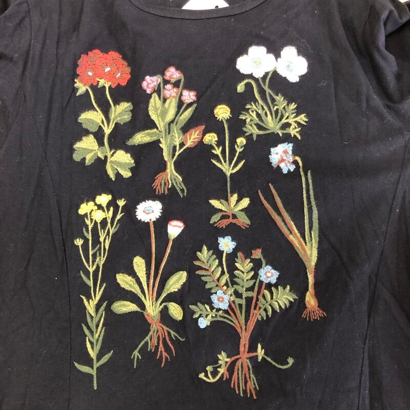 スーパーハッカ SUPER HAKKA ワンピース 長袖 ポケット 花刺繍 綿 濃紺 907439