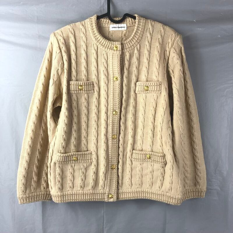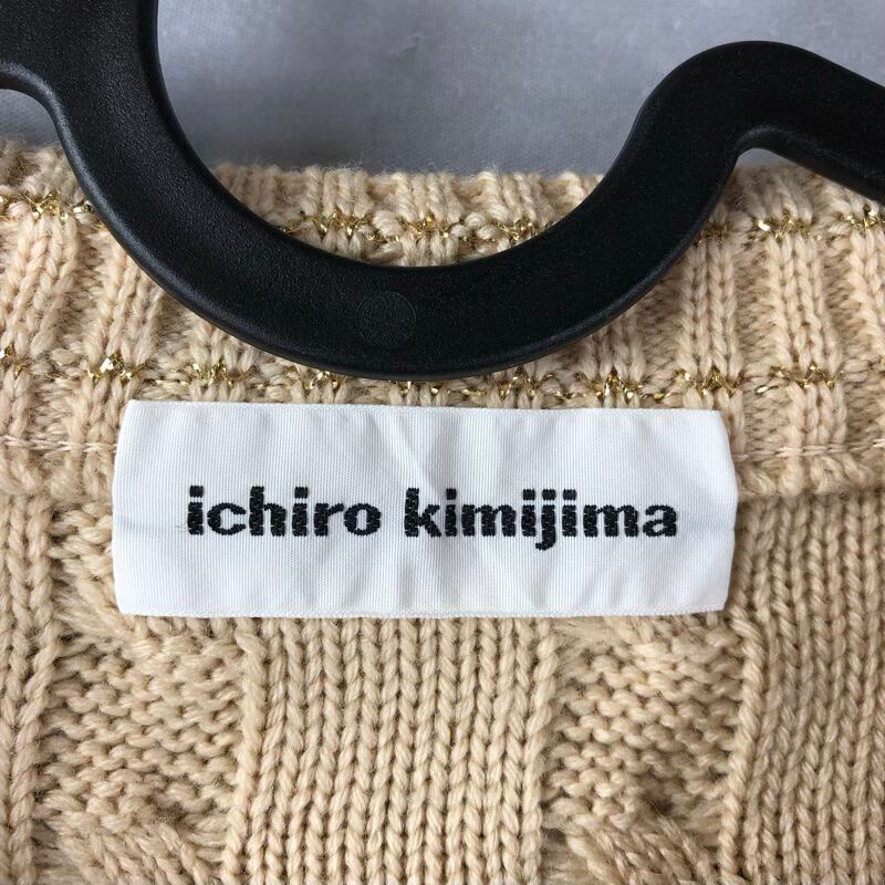 イチローキミジマ ichiro kimijima カーディガン ニット ゴールドボタン ラメ ポケット 肩パッド ベージュ 908117