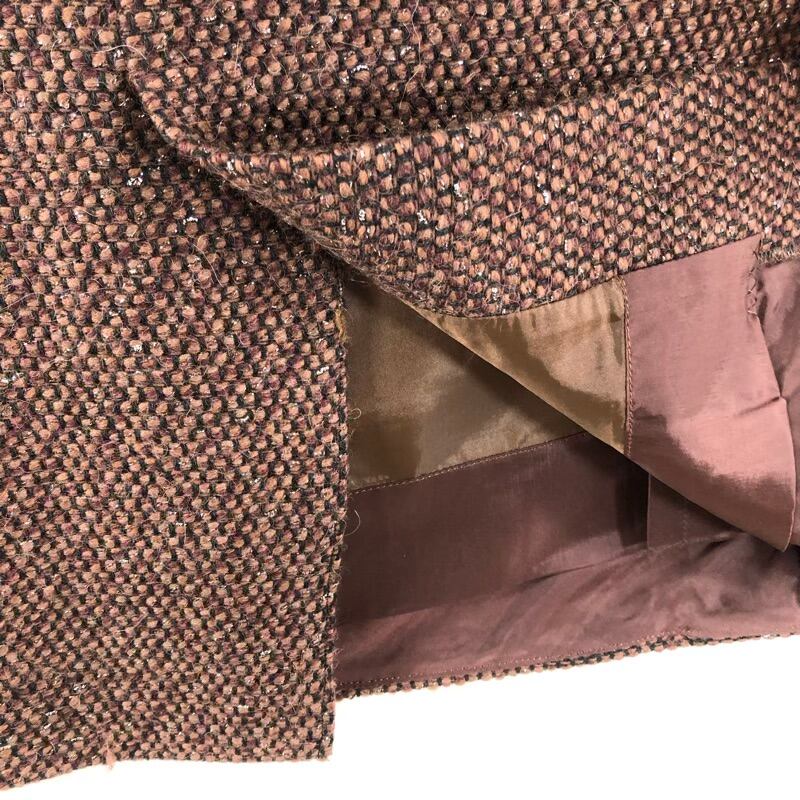 エマイユ 絵麻亥由 セットアップ スカート 襟元ファー付 肩パッド ブラウン 9サイズ 908126