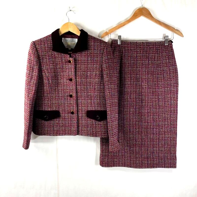 エマイユ 絵麻亥由 セットアップ スーツ スカート 肩パット ラメ 赤系 9号 908127