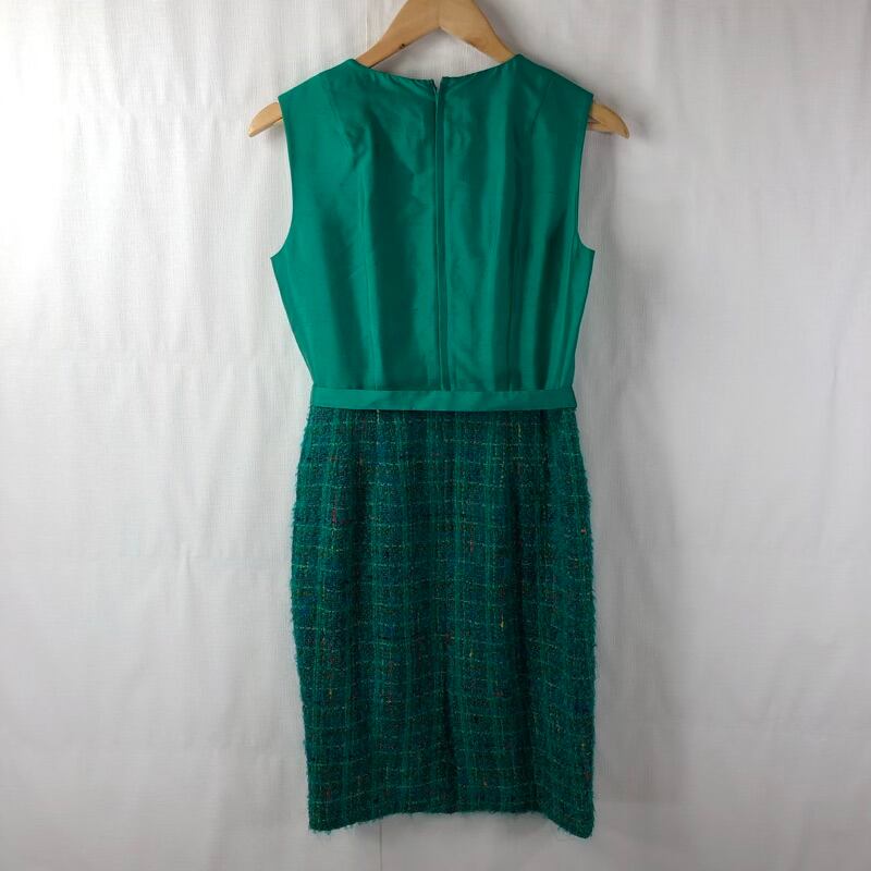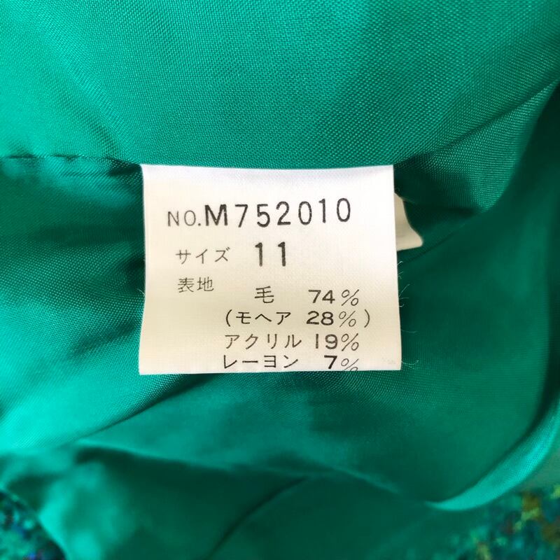 ユキサブロウワタナベ YUKISABURO WATANABE セットアップ ノースリーブワンピース ジャケット 腰リボン 肩パット 緑 11サイズ 908177