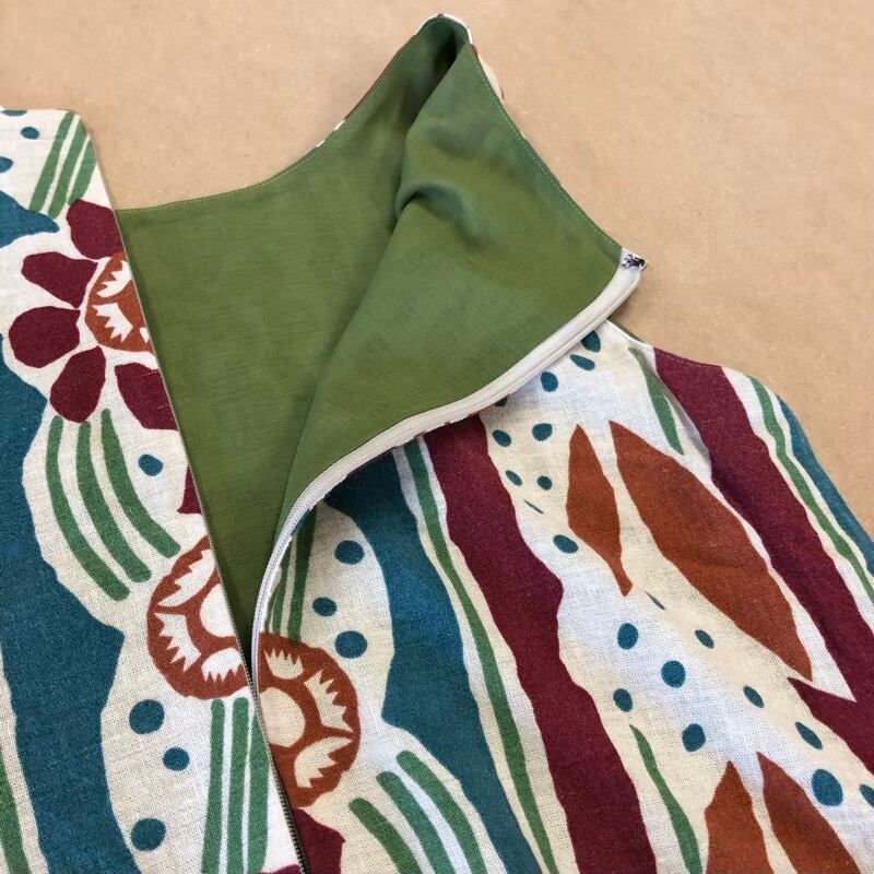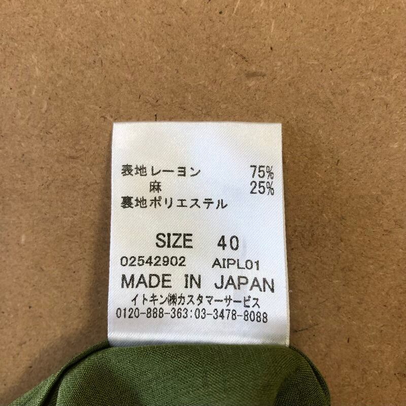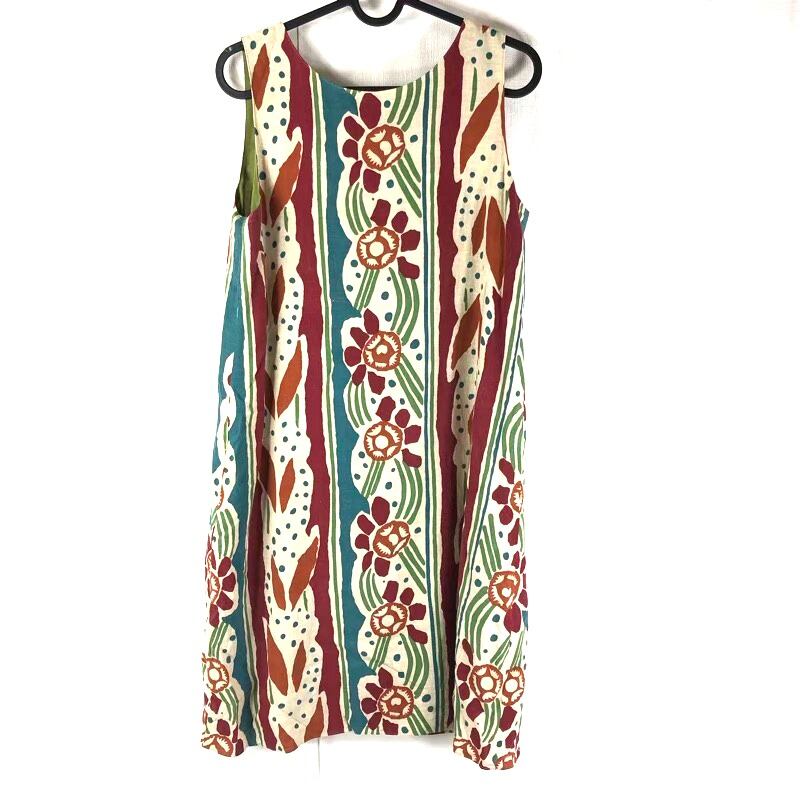 ホコモモラ Jocomomola ワンピース ノースリーブ 草花柄 裏地付き バックファスナー 日本製 ベージュ 緑 オレンジ 40サイズ 911169