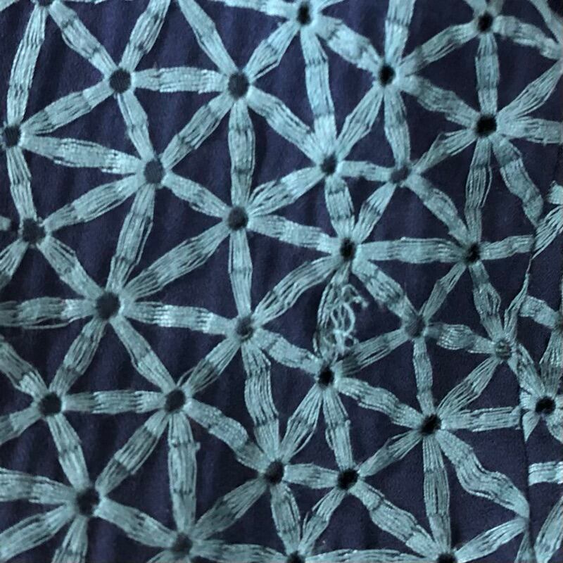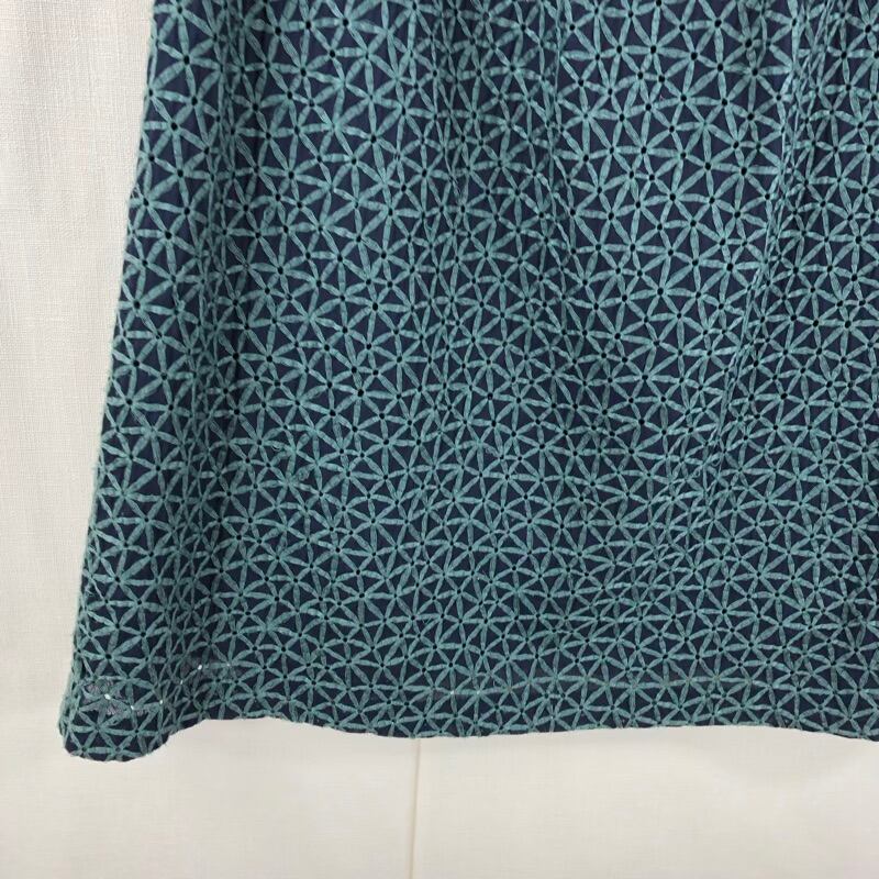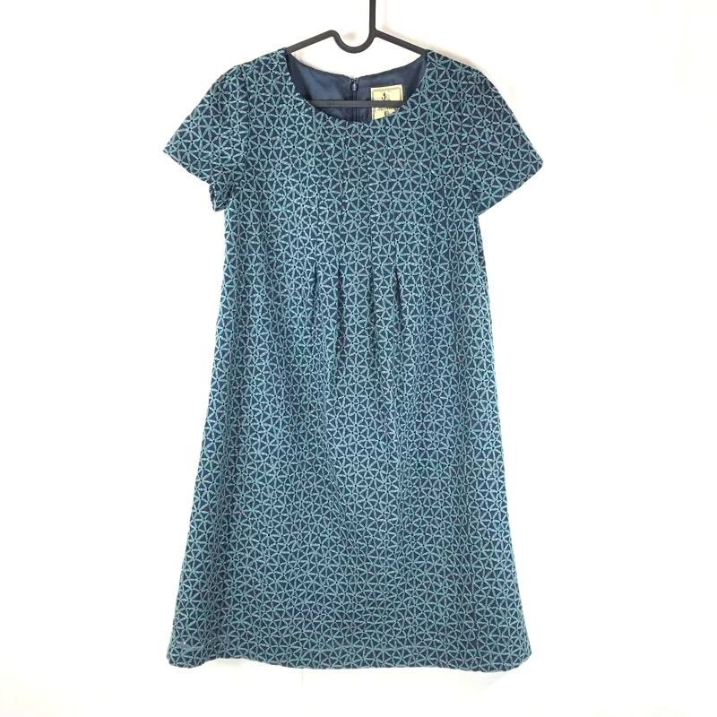 ホコモモラ Jocomomola ワンピース 半袖 花模様 タック 裏地付き ネイビー 緑系 42サイズ 911171