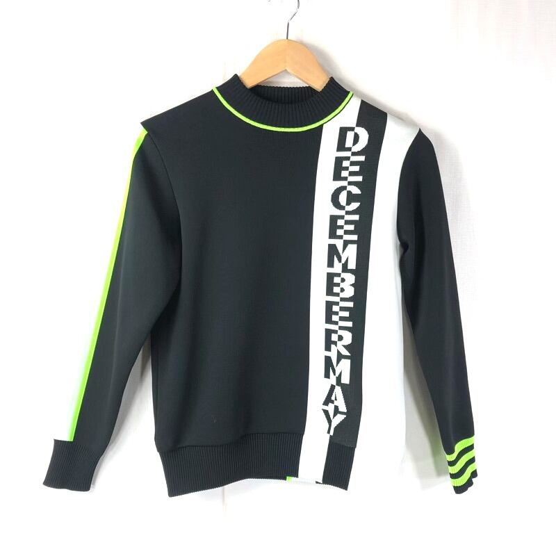 ディセンバーメイ DECEMBERMAY カットソー 長袖 ゴルフトップス ロゴ入り ライン リブ 白 黒系 Sサイズ 913305