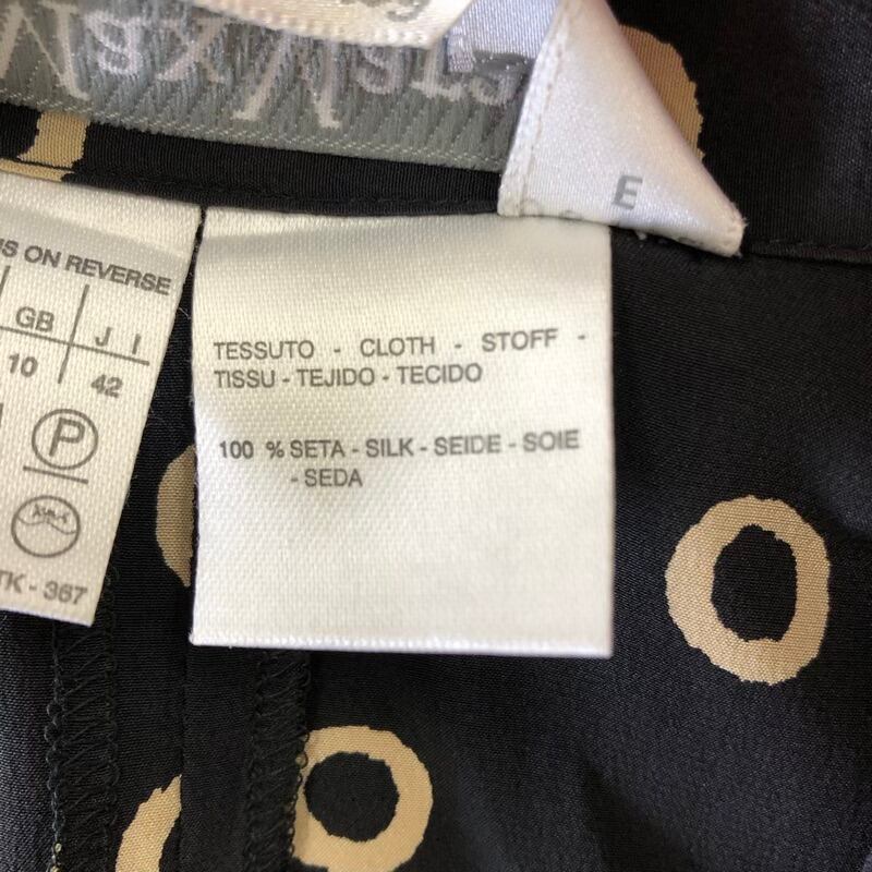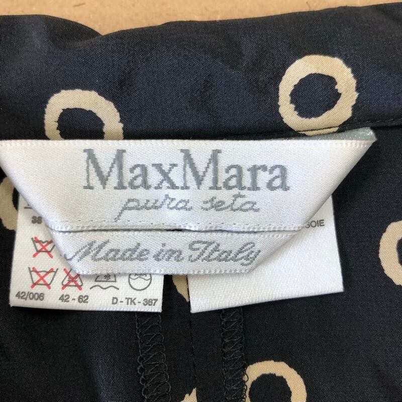 マックスマーラ Max Mara ワンピース ロング シルク 半袖 スリット イタリア製 サークル模様 黒 J42サイズ 914368
