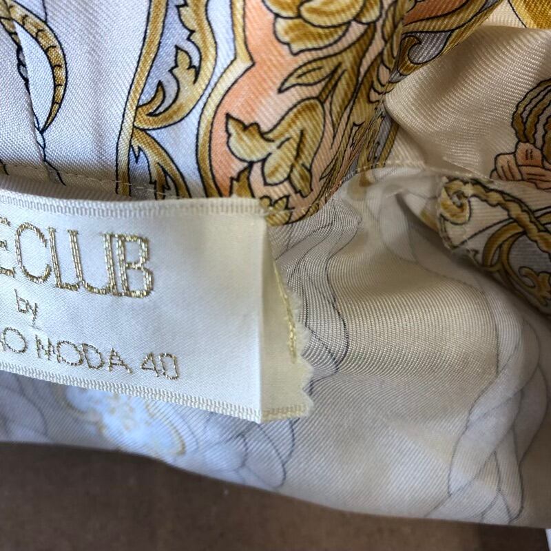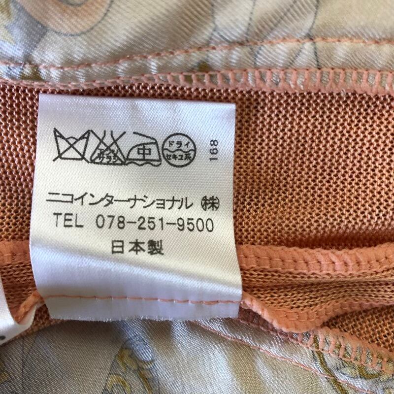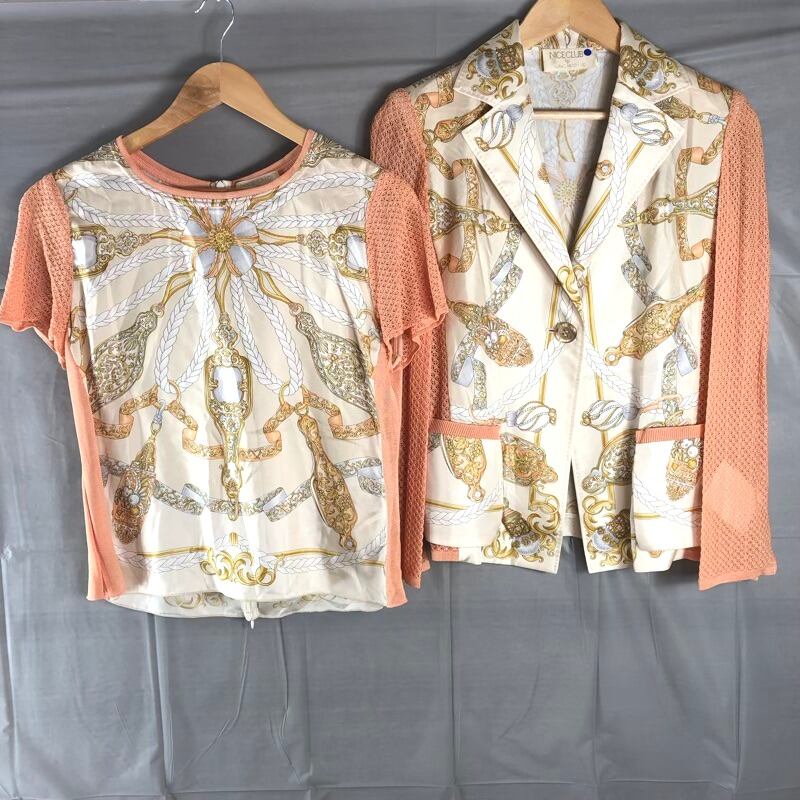 ナイスクラブ NICEClUB by MIMO MODA アンサンブル カットソー ジャケット セット シルク100% スカーフ地 レース編み袖 肩パッド タグ付き オレンジ ベージュ系 42サイズ 915599