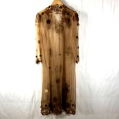 ドレステイ DRESS TEI ワンピース ロング 花ボタン 花装飾 長袖 シースルー生地 ブラウン系 915809
