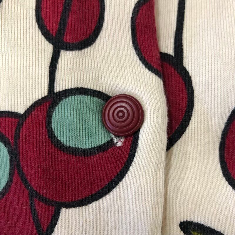 ホコモモラ Jocomomola カーディガン 長袖 ボタニカル柄 赤ボタン コットン 赤 クリーム 40サイズ 915812