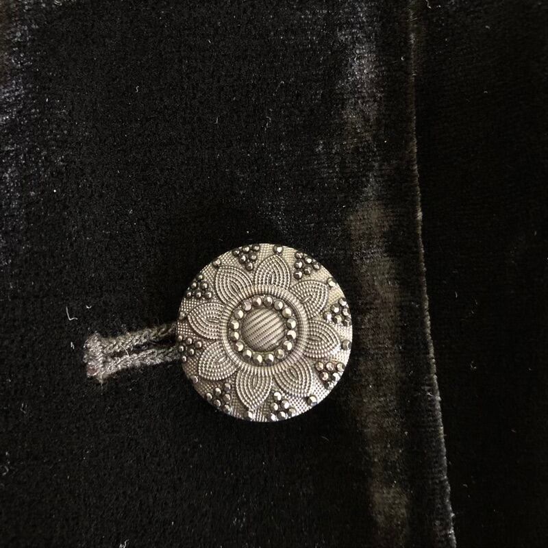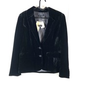 ローラアシュレイ LAURA ASHLEY ジャケット ベロア生地 飾りボタン フェイクポケット 肩パッド タグ付き 黒 13サイズ 915816