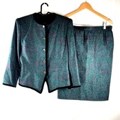 ウンガロパラレルパリ UNGARO parallele paris セットアップ スカートスーツ 飾りボタン アラベスク柄 ベロア 肩パッド 緑系 11サイズ 915818